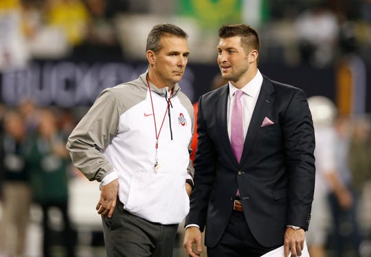 Could Urban Meyer (left) and Tim Tebow (right) be reunited with the Jacksonville Jaguars? (Photo: Matthew Emmons, USA TODAY Sports)