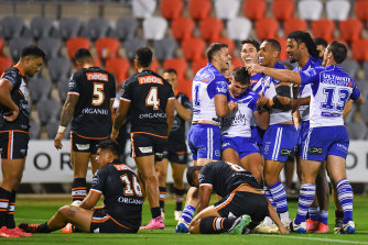 The Tigers were embarrassed 38-0 on Sunday by the hapless Bulldogs.Credit:Getty