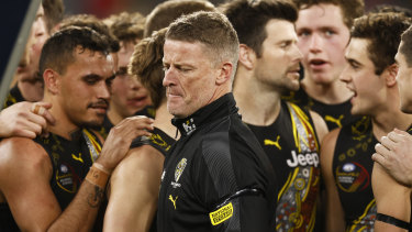 The back-to-back reigning premiers will finish the round 12th on the ladder after coughing up a 29-point third-quarter lead to lose to the Magpies by 16 points. And the challenges keep coming for the Tigers, who premiership coach Hardwick said are unlikely to regain any of their injured core for Friday night’s clash with Brisbane at the MCG.