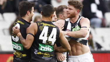 Damien Hardwick defended Trent Cotchin after Richmond’s rapidly-evaporating finals hopes were dashed further as they capitulated late against Collingwood at the MCG on Sunday.