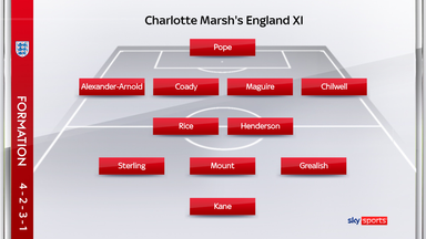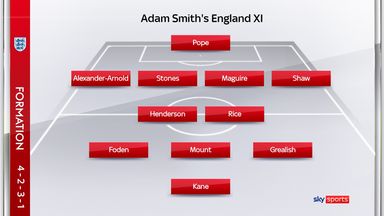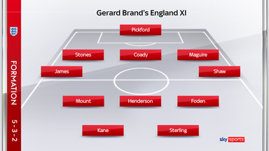 Jordan Henderson anchors the midfield, with Mason Mount and Phil Foden offering industry as well as creativity ahead of him, while Raheem Sterling’s pace will be vital on the break.