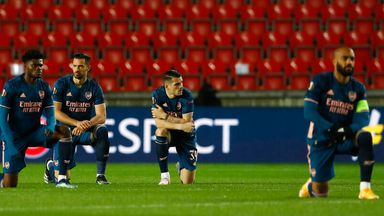 Mikel Arterta: Arsenal boss says his players had 'right reason' to take a knee ahead of Slavia Prague Europa League game