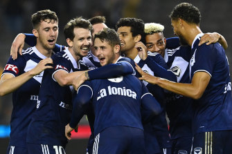 Victory celebrate one of their five goals.Credit:Getty Images