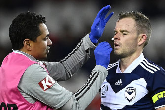 Leigh Broxham gets treatment.Credit:Getty Images