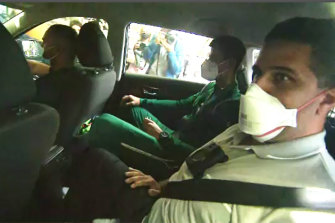 Novak Djokovic is driven back to detention at The Park Hotel in Carlton.Credit:Nine News