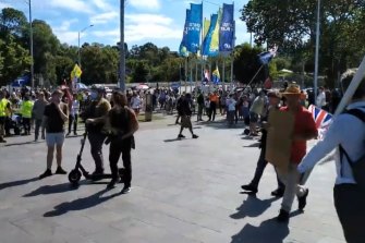 The protest group have appeared weekly on the streets of Melbourne throughout the pandemic, and today’s rally – planned before the Djokovic saga started – was to be focused on opposing vaccinating children for COVID-19.